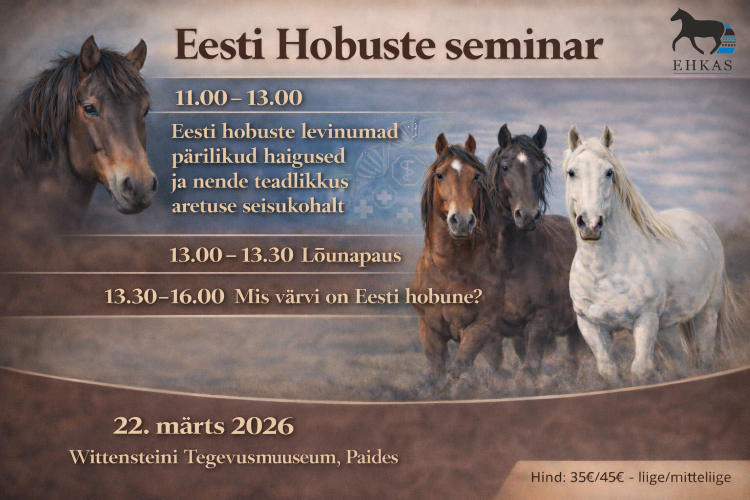 Olete oodatud Eesti Hobuste Seminarile, mis toimub 22. märtsil 2026 Paides, Wittensteini Tegevusmuuseumis. Seminar on suunatud hobusekasvatajatele, aretajatele, hobuseomanikele ning…