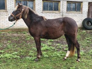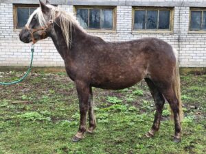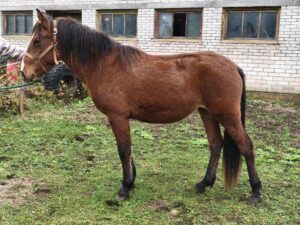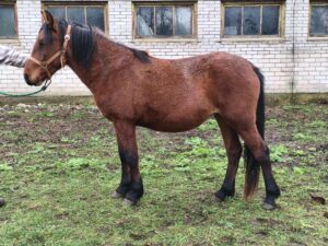 1. Ilma märgatava võõrveresuse mõjuta eesti tõugu hobune. Sugutüüp väljendunud. Konstitutsioonitüübilt õrn. 2. Kerge sirge profiiliga pea, normaalne silm, normaalne kukal, kitsas lõuapärade vahe, hea pikkusega normaalse asetusega kael, normaalne rind, madal pikk turi, normaalne selg, pikk tõusev nimme, luipu laudjas ja hetkel tagakõrge. 3. Lamedad kabjad ja pehmed sõrgatsid. Esijalgade seis eestvaates normaalne ja külgvaates taatsirandmeline. Tagajalgade seis tagantvaates harkvarbne. Käik on eest kitsas ning tagant kitsas ja sõudev. Väiksed randme- ja kannaliigesed. 4. Samm on piisava pikkusega, piisavalt elastne, piisava randme tööga, piisava selja kasutusega ja ühtlase rütmiga. 5. Traav on allamäge, lühike, jäik, vähese esijalgade tööga, tagajalgadega astub keha alla ja ebaühtlase rütmiga. 6. Galopp on tasakaalutu, lühemapoolne, jäik ja ebaselge rütmiga.
