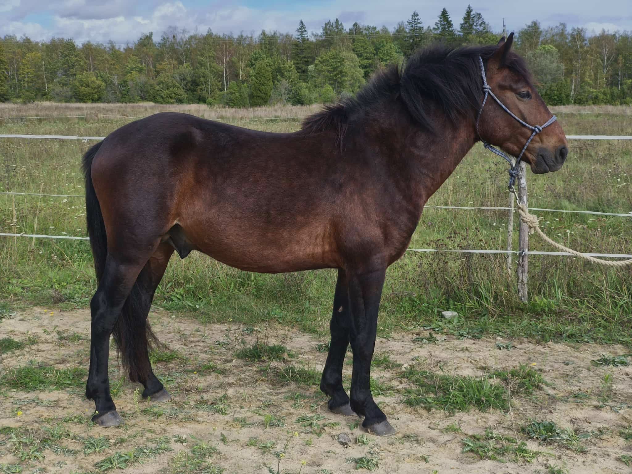 1. Ilma märgatava võõrveresuse mõjuta väga tõutüüpiline eesti tõugu hobune. Sugutüüp väljendunud, märalik. Kehaehituselt tasakaalus. 2. Kerge sirge profiiliga pea, hea suurusega ilmekas silm, pikk kukal, normaalne lõuapärade vahe, pikemapoolne hea asetusega luigekael, laiemapoolne rind, veidi püstine piht, madal pikk turi ja lühike nimme. 3. Normaalsed kabjad ja veidi püstised sõrgatsid. Normaalsed randme- ja kannaliigesed. Esijalgade seis eestvaates veidi koondvarbe ja külgvaates normaalne. Tagajalgade seis tagantvaates veidi kooskandne, kitsas ja harkvarbne. Käik on eest kitsas ja keriv ning tagant kitsas ja sirgjooneline. 4. Samm on hea pikkusega, piisavalt elastne, hea randme tööga, piisava selja kasutusega ja selge rütmiga. 5. Traav on piisava pikkusega, lühike, jäik, seotud esijalgade tööga, tagajalgadega astub keha alla ja selge rütmiga. 6. Galopp on heas tasakaalus, piisava pikkusega, hea elastusega ja selge rütmiga. 8. Heas konditsioonis, hea iseloomu ja koostöö tahtega eesti tõugu hobune. Sümpaatne.