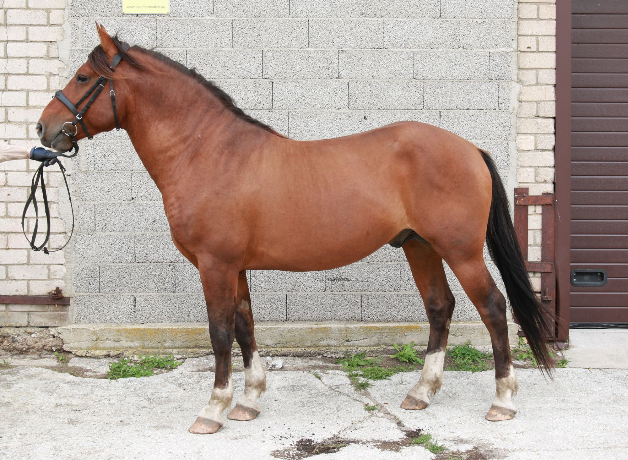 1. Ilma märgatava võõrveresuse mõjuta tõutüüpiline eesti tõugu hobune. Juttselgne. Sugutüüp väljendunud. Konstitutsioonitüübilt tihke. 2. Kerge sirge profiiliga pea, suur silm, hea pikkusega kukal, kitsas lõuapärade vahe, piisava pikkusega hea asetusega kael, kitsamapoolne rind, püstine piht, kõrge pikk turi, veidi nõgus normaalse pikkusega selg, pikk nimme, veidi luipu laudjas ja tagakõrge. 3. Laiad lamedad kabjad ja lühikesed sõrgatsid. Esijalgade seis eestvaates normaalne, külgvaates veidi taatsirandmeline. Tagajalgade seis tagantvaates harkvarbne ja külgvaates veidi saabeljalgne. Suured tugevad randme- ja kannaliigesed. Käik on eest ja tagant kitsas. 4. Samm on pikk, hea elastsusega, hea randme tööga, hea selja kasutusega ja selge rütmiga. 5. Traav on tasakaalus, veidi lühike, jäik, hea esijalgade tööga ning selge rütmiga. 6. Galopp on tasakaalus, pikk, hea elastusega, ülesmäge impulsiga ja selge rütmimga. 7. Jõuline, kiire äratõukega, elastne ja tasakaalus hüpe. Takistusele läheneb tähelepanelikult ja jalgade töö hüppel on kiire. 8. Hea iseloomuga, koostööaldis ja sümpaatne noor hobune.