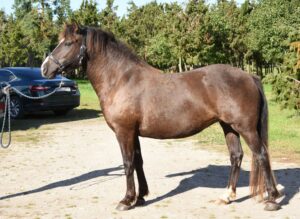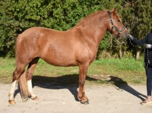 1. Ilma märgatava võõrveresuse mõjuta tõutüüpiline eesti tõugu hobune. Sugutüüp hästi väljendunud, märalik. Konstitutsioonitüübilt tihke. Kehaehituselt tasakaalus. 2. Normaalne sirge profiiliga pea, suur silm, pikemapoolne kukal, avar lõuapärade vahe, pikemapoolne kõrge asetusega kael, normaalne rind, normaalne piht, kõrge turi, pikk veidi nõgus selg, normaalne nimme ja libajas laudjas. 3. Normaalsed kabjad ja normaalsed sõrgatsid. Esijalgade seis eestvaates normaalne ja külgvaates taatsirandmeline. Tagajalgade seis tagantvaates harkvarbne ja külgvaates normaalne. Hea suurusega randme- ja kannaliigesed. Käik on eest kitsas. 4. Samm on pikk, elastne, väga hea randme tööga, väga hea selja kasutusega ja selge rütmiga. 5. Traav on ülesmäge, pikk, elastne, avara esijalgade tööga, tagajalgadega astub hästi keha alla ja selge rütmiga. 6. Galopp on heas tasakaalus, pikk, avar, elastne, ülesmäge impulsiga ja selge rütmiga. 7. Jõuline, kiire äratõuke kiirusega ja tasakaalus hüpe. Takistusele läheneb tähelepanelikult ja jalgade töö hüppel on hea. 8. Heas konditsioonis, väga hea iseloomu ja koostöö tahtega hobune.
