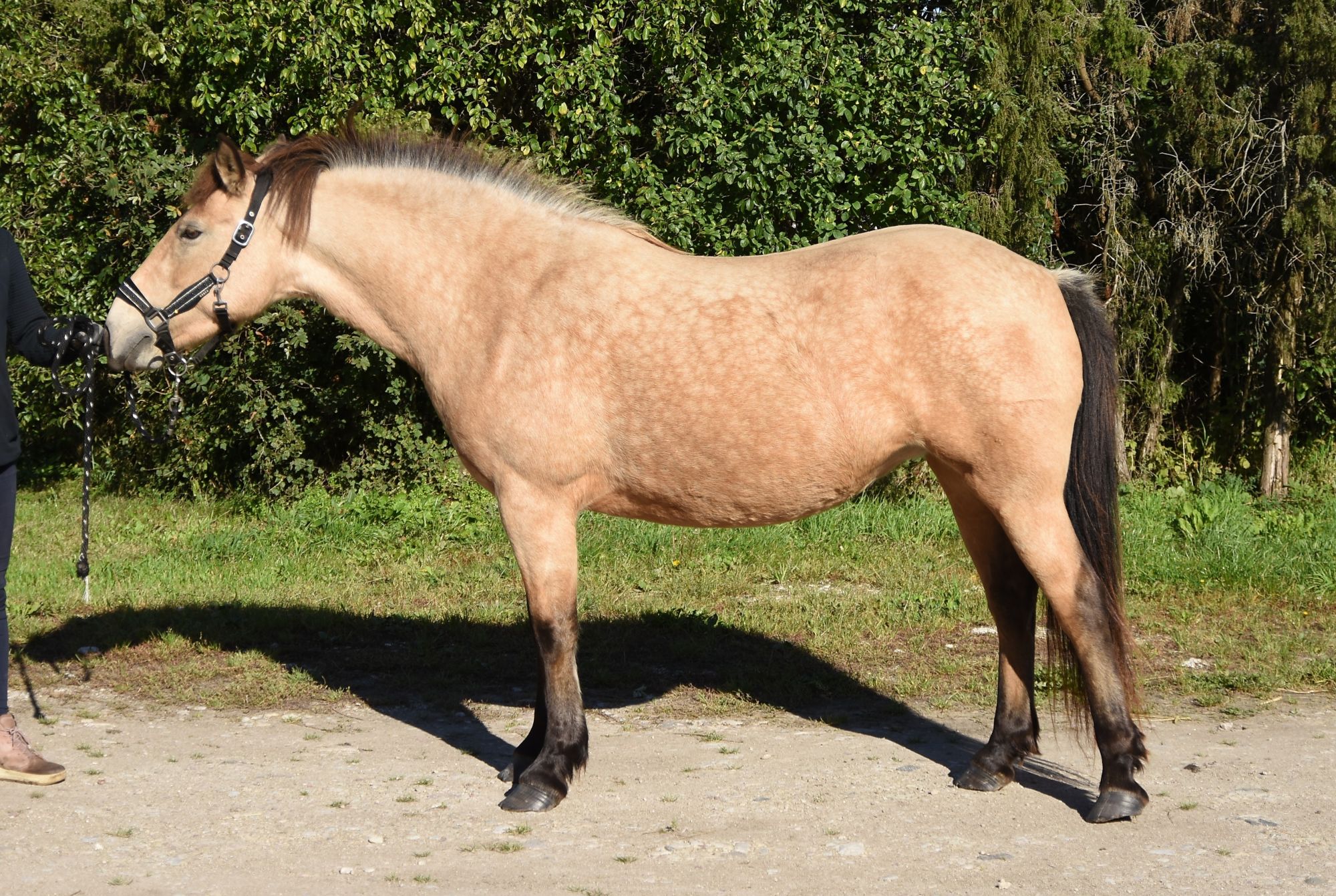 1. Ilma märgatava võõrveresuse mõjuta tõutüüpiline eesti tõugu hobune. Juttselgne ja sebroidsed märgised. Sugutüüp väljendunud. Konstitutsioonitüübilt õrnemapoolne. Kehaehituselt tasakaalus. 2. Normaalne sirge profiiliga pea, suur silm, lühemapoolne kukal, avar lõuapärade vahe, pikk normaalse asetusega kael, normaalne rind, normaalne piht, kõrge pikk turi, pikk selg, lühike nimme ja lühike horisontaalne laudjas. 3. Normaalsed kabjad ja pikad veidi pehmed sõrgatsid. Esijalgade seis eestvaates harkvarbne ning külgvaates taatsirandmeline. Tagajalgade seis tagantvaates kitsamapoolne ja harkvarbne. Käik on eest kitsas ja keriv ning tagant kitsas. Normaalsed randme- ja kannaliigesed. 4. Samm on pikk, elastne, piisava randme tööga, hea selja kasutusega ja selge rütmiga. 5. Traav on pikk, tasakaalus, elastne, hea esijalgade tööga, tagajalgadega astub hästi keha alla ja selge rütmiga. 6. Galopp on väga heas tasakaalus, pikk, avar, hea elastsusega ja selge rütmiga. 7. Jõuline, kiire äratõukega, jäik ja tasakaalus hüpe. Takistusele läheneb tähelepanelikult ja jalgade töö hüppel on hea. 8. Heas konditsioonis, hea iseloomu ja koostöö tahtega hobune.