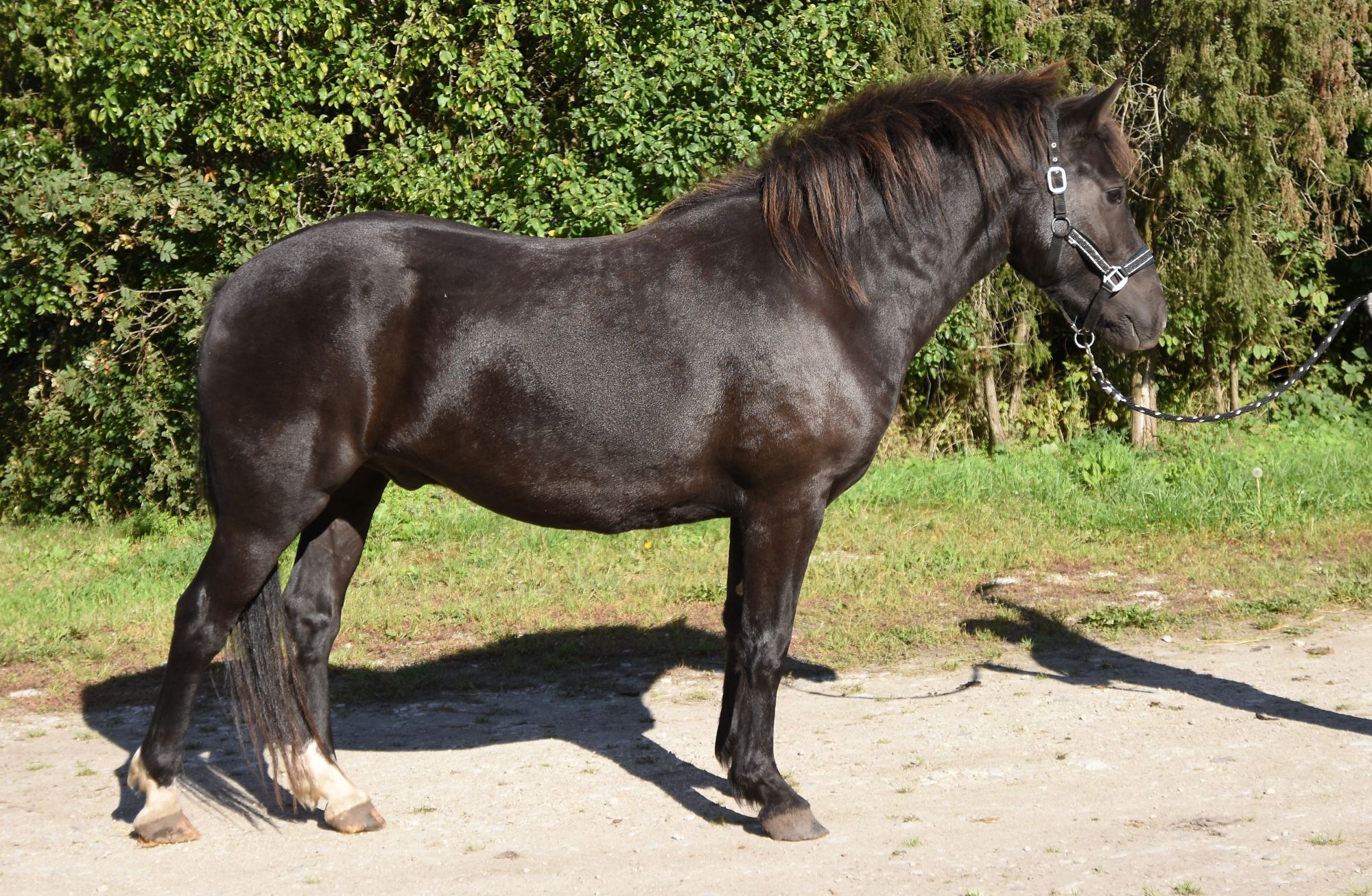 1. Ilma märgatava võõrveresuse mõjuta tõutüüpiline eesti tõugu hobune. Sugutüüp hästi väljendunud, märalik. Konstitutsioonitüübilt tihke. Kehaehituselt tasakaalus. 2. Ilmekas sirge profiiliga pea, suur silm, pikemapoolne kukal, normaalne lõuapärade vahe, pikemapoolne kõrge asetusega kael, normaalne rind, libajas piht, kõrge pikk turi, lühemapoolne selg, väga pikk nimme ja libajas laudjas. 3. Normaalsed kabjad ja lühikesed sõrgatsid. Lühike kämmal. Normaalse suurusega randme- ja kannaliigesed. Esijalgade seis eestvaates normaalne ja külgvaates taatsine. Tagajalgade seis tagantvaates harkvarbne ja külgvaates sirge. Käik on eest kitsas ja keriv ning tagant kitsas. 4. Samm on hea pikkusega, elastne, hea randme tööga, hea selja kasutusega ja selge rütmiga. 5. Traav on tasakaalus, hea pikkusega, piisava elastsusega, hea esijalgade tööga, tagajalgadega astub hästi keha alla ja selge rütmiga. 6. Galopp on heas tasakaalus, lühike, piisavalt elastne, ülesmäge impulsiga ja selge rütmiga. 7. Jõuline, kiire äratõukega, elastne ja tasakaalus hüpe. Takistusele läheneb väga tähelepanelikult ja jalgade töö hüppel on hea. 8. Heas konditsioonis, hea iseloomu ja koostöö tahtega hobune.