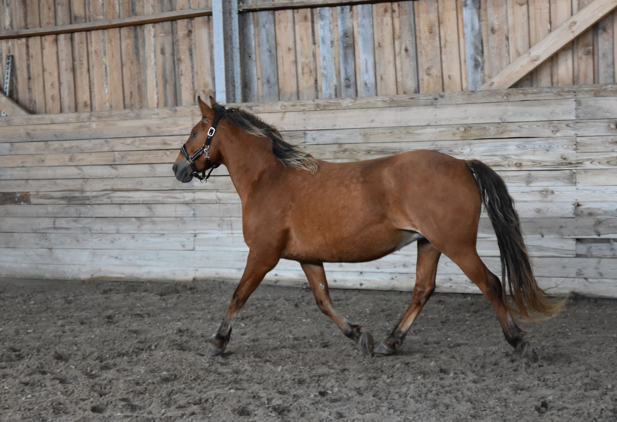 1. Ilma märgatava võõrveresuse mõjuta väga tõutüüpiline eesti tõugu hobune. Sugutüüp hästi väljendunud, märalik. Konstitutsioonitüübilt õrn. Kehaehituselt tasakaalus. 2. Kerge sirge profiiliga pea, suur silm, pikk kukal, normaalne lõuapärade vahe, pikemapoolne madalama asetusega kael, lai rind, normaalne piht, kõrge lühemapoolne turi, pikemapoolne selg, pikk nimme ja libajas laudjas. 3. Lamedad kabjad ja lühikesed sõrgatsid. Esijalgade seis eestvaates veidi harkvarbne ja külgvaates taatsine seis. Tagajalgade seis tagantvaates harkvarbne. Väiksed randme- ja kannaliigesed. Käik on eest ja tagant kitsas. 4. Samm on pikk, elastne, hea randme tööga, väga hea selja kasutusega ja selge rütmiga. 5. Traav on tasakaalus, pikk, elastne, avara esijalgade tööga, tagajalgadega astub hästi keha alla ja selge rütmiga. 6. Galopp on heas tasakaalus, hea pikkusega, elastne ja selge rütmiga. 8. Heas konditsioonis, väga hea iseloomu ja koostöö tahtega hobune.