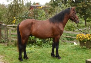 1. Ilma märgatava võõrveresuse mõjuta tõutüüpiline eesti tõugu hobune. Sugutüüp hästi väljendunud, märalik. Konstitutsioonitüübilt tihke. 2. Kerge sirge profiiliga pea, väike silm, lühike kukal, avar lõuapärade vahe, normaalse asetusega kael, normaalne rind, normaalne piht, normaalne turi, pikk selg, lühike nimme ja libajas laudjas. 3. Normaalsed kabjad ja lühikesed sõrgatsid. Esijalgade seis eestvaates harkvarbne ja tagantvaates normaalne. Käik on eest ja tagant kitsas. Hea suurusega randme- ja kannaliigesed. 4. Samm on pikk, hea elastsusega, hea randme tööga, piisava selja kasutusega ja selge rütmiga. 5. Traav on tasakaalus, lühike, jäik, hea esijalgade tööga, tagajalgadega astub keha alla ja selge rütmiga. 6. Galopp on heas tasakaalus, lühike, jäik, vähese selja hõivatusega ja selge rütmiga. Jookseb sirgete tagajalgadega. 7. Piisava jõulisusega, hea äratõuke kiirusega, jäik ja tasakaalus hüpe. Takistusele läheneb ettevaatlikult ja jalgade töö hüppel on piisav. 8. Väga hea iseloomu ja koostöö tahtega eesti tõugu hobune.